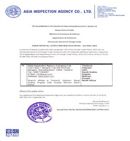 We are a mandated PSI Agency and a PSI Certification from Asia Inspection Agency is required for Customs Clearance in most of the Countries..